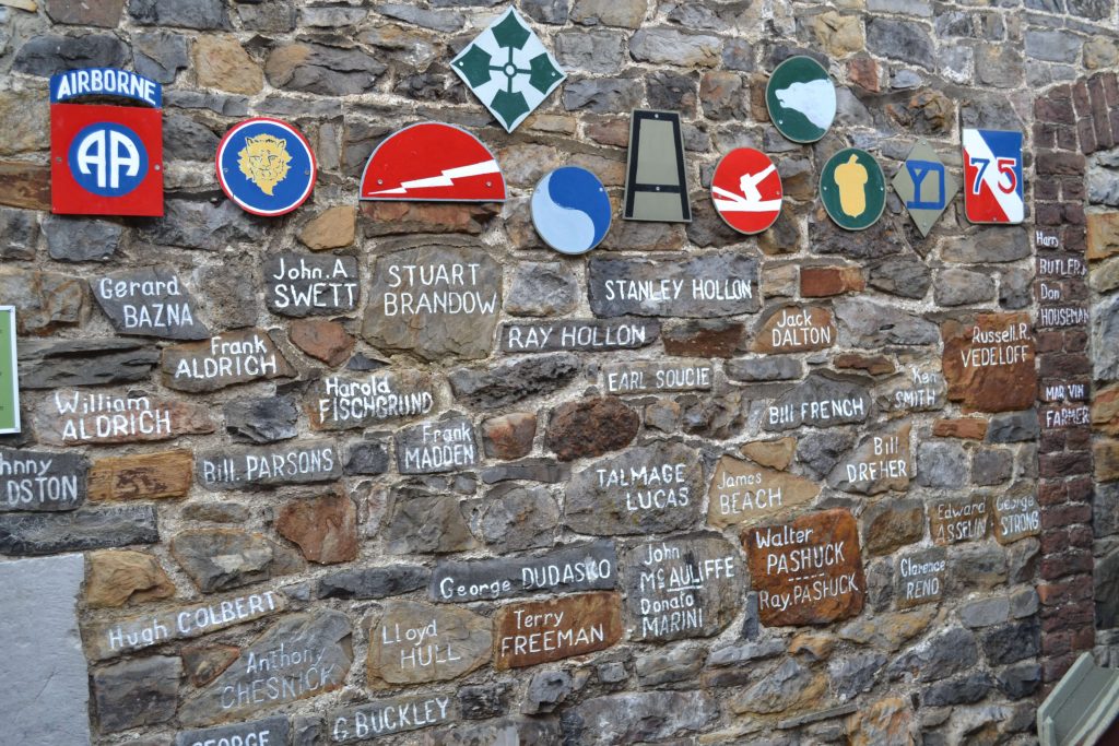 Today, it exhibits many items left behind by the soldiers of the 1st U.S. Infantry Division and memorabilia donated by the veterans. One hundred mannequins, clothing, flags, etc., are assembled in the museum- and each item is linked to someone and tells us a personal story. Mathilde and Marcel are still in touch with hundreds of American families. The Americans who come to visit them call them “M & M’.”